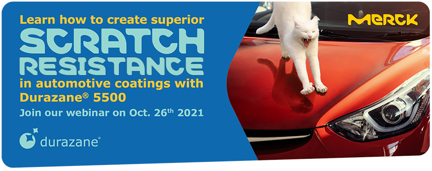 Durazane® 5500 ile otomobil kaplamalarında üstün ÇİZİLME DİRENCİ ‘nin nasıl oluşturulacağını öğrenin. Webinar 26 Ekim 2021 tarihindedir.